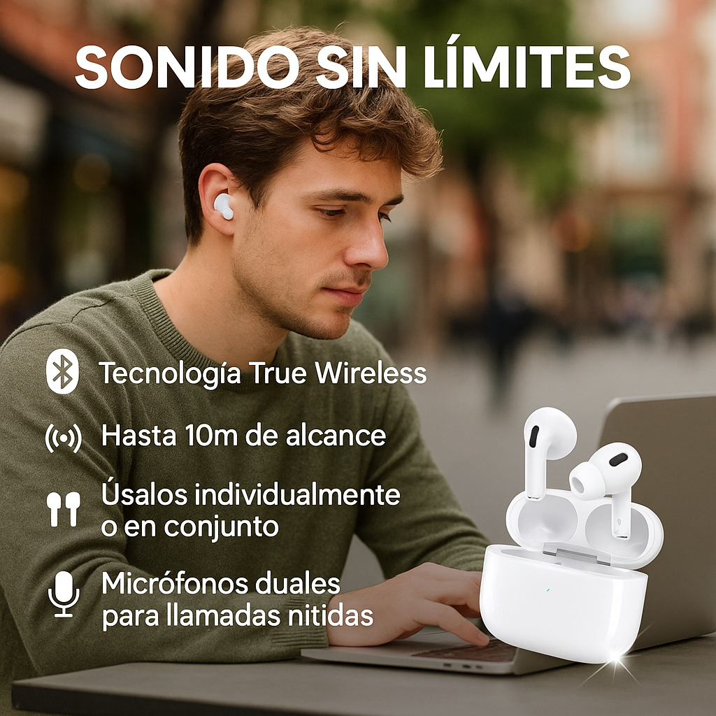 Lleva tu música y llamadas sin interrupciones. Con estos audífonos tienes autonomía real y un estuche que recarga sin cables para que sigas a tu ritmo en cualquier lugar.